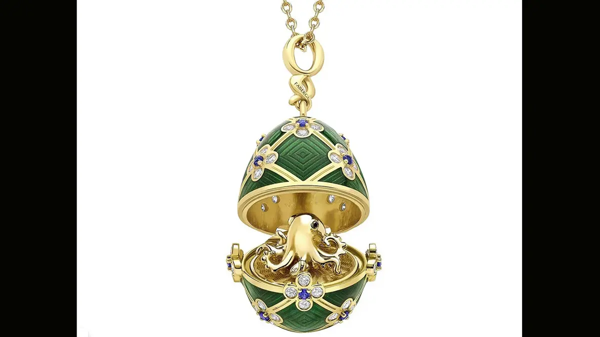 تخممرغ آویز، «شگفتانهای» دارد – داخل آن شامل یک اختاپوس کوچک طلای ۱۸ عیار با دو چشم الماس سیاه است.
