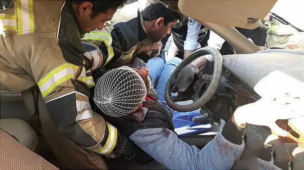 محمود عبدالهی رییس ایستگاه 125 سازمان آتش نشانی تهران در این باره اظهار داشت: یک دستگاه خودروی سواری سمند به هنگام حرکت در مسیر جنوب به شمال بزرگراه آزادگان به دلایل نامعلومی به شدت با قسمت عقب یک دستگاه کامیون باری برخورد کرد که براثر آن راننده جوان خودروی سمند بشدت آسیب دید و در داخل خودرو و پشت فرمان گرفتار شد.