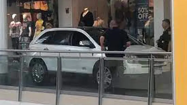 ویدیوها و عکسهای تلفن همراه گرفته شده از این حادثه نشان میدهد که همه رهگذران از دیدن این خودرو متعجب شدهاند. پلیس این شهرستان در خبر این حادثه اعلام کرده که راننده یک زن مسن است. در این خبر مشخص نشده که چرا او وارد مرکز خرید شده است.