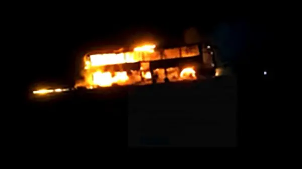 حوادث رکنا: رئیس پلیس راه استان یزد: اتوبوس مسافربری مشهد - اردکان در آتش سوخت، خوشبختانه به مسافران صدمه ای وارد نشد و تمامی مسافران در سلامت کامل هستند.