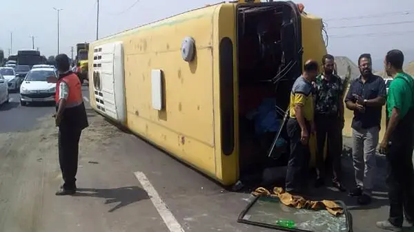 واژگونی هولناک اتوبوس مسافربری در شهریار