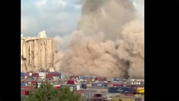 ببینید / لحظه فرو ریختن هشت سیلوی غله بندر بیروت + فیلم
