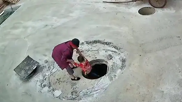 فیلم لحظه سقوط پسر حواس پرت به چاه / در وسط خیابان رخ داد