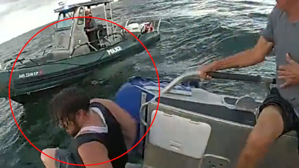 رکنا : پلیس دریایی بوستون پدر و پسر را که قایق تفریحی آن ها بر اثر نقص فنی غرق شده بود از مرگ حتمی نجات داد .