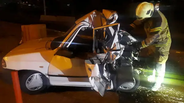 بلافاصله ایستگاه شماره ۵۰ با امکانات کامل به محل اعزام و در محل مشاهده شد که یک دستگاه خودرو مینی بوس با یک سرنشین مرد به دلیل نامشخصی با قسمت عقب یک دستگاه پراید با 2 نفر سرنشین برخورد  کرده است .