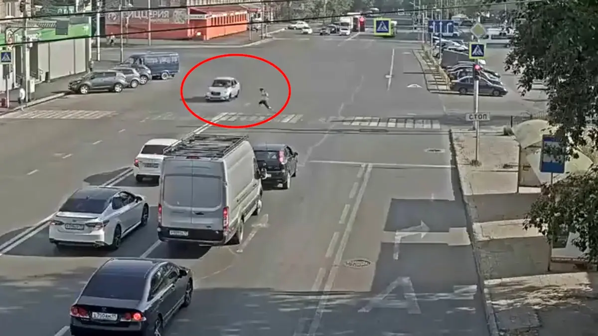 فیلم تصادف عجیب جوان دونده با یک خودروی روی خط عابرپیاده / ببینید