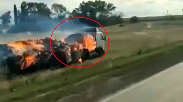 رکنا : راننده کامیون محموله کاه وقتی بارش دچار آتش سوزی شد برای اینکه حادثه ای در بزرگراه رخ ندهد از جاده خارج شد تا راهی برای خاموش کردن خودرویش به دست آورد.