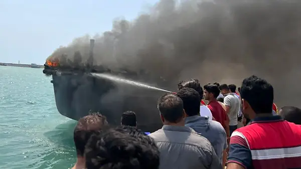 فیلم آتش سوزی شدید در بندرسیریک/ ۴ لنج صیادی سوخت