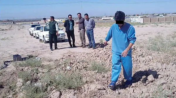 متهمان در حال نشان دادن محل دفن جسد به قاضی ویژه قتل عمد