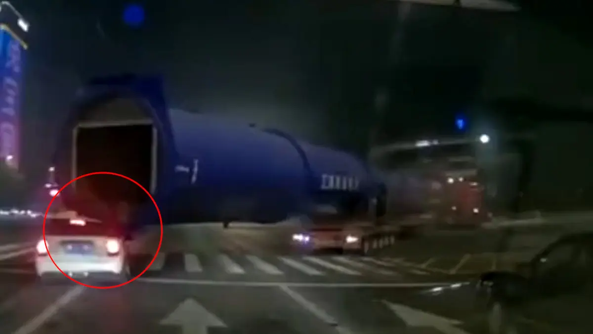 فیلم عجیب از رانندگی کامیون با بار عجیب / خودروی لوکس له شد