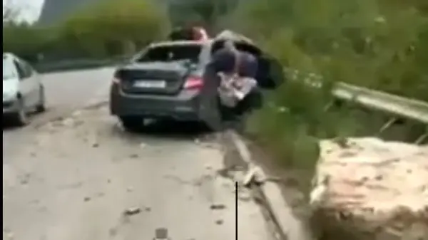 حوادث رکنا: ویدیویی از سقوط هولناک صخره بر روی خودروی ایرانی را ببینید.