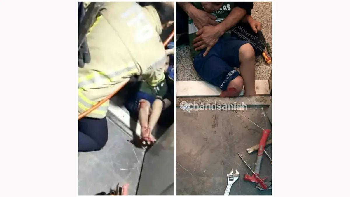 گیرکردن پاهای پسر 10 ساله بین دیوار و کابین آسانسور + عکس های دلخراش