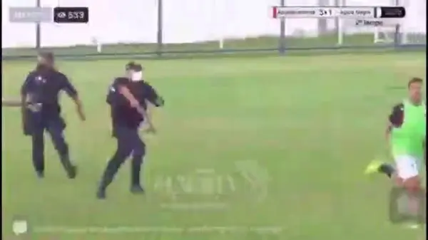 ببینید / تعقیب یک فوتبالیست در زمین با اسلحه توسط پلیس! / شوکه می شوید
