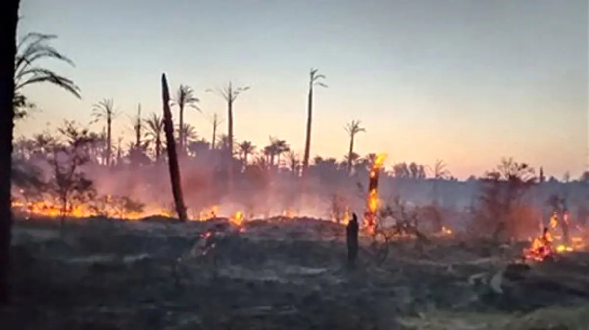 ببینید / آتشسوزی در ۶ هکتار از نخلستانهای رودان + فیلم