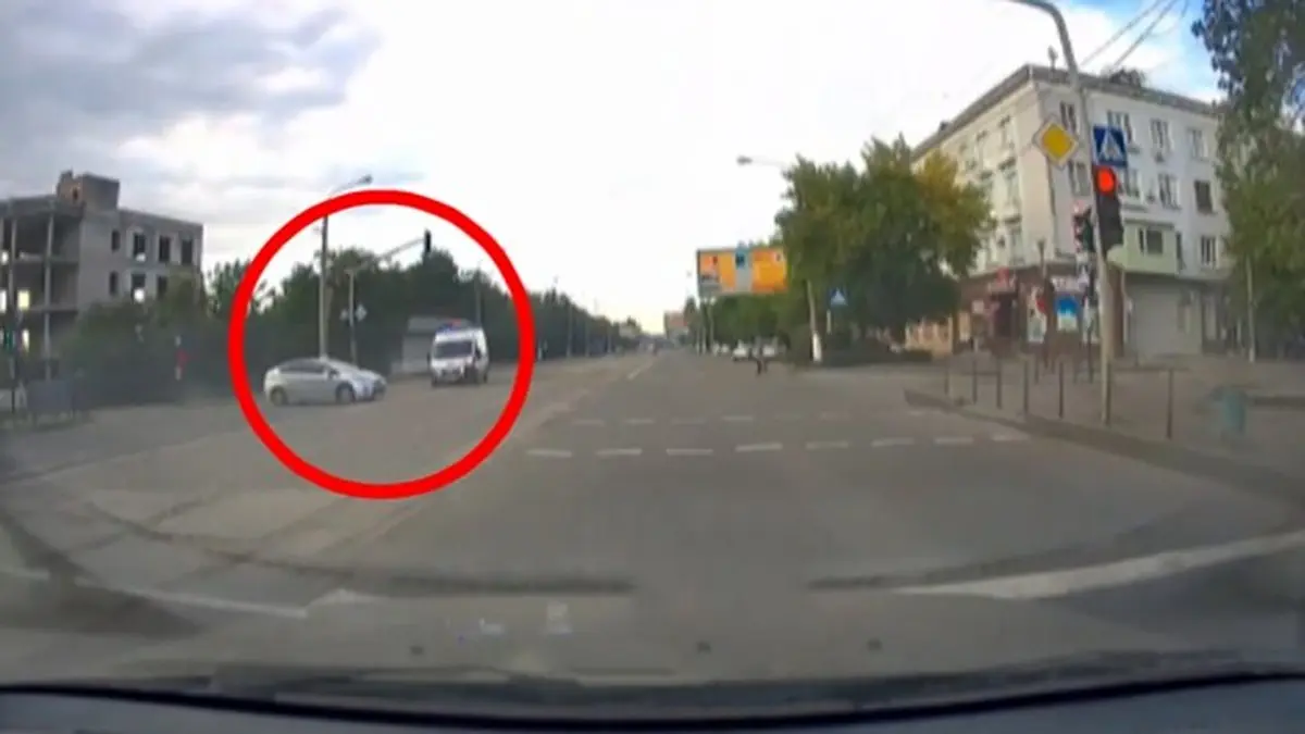 یک راننده زن هنگام عبور از تقاطعی در شهر لوهانسک اوکراین، با آمبولانس تصادف کرد. خودروی آمبولانس آژیرکشان از تقاطع عبور می‌کرد که این حادثه رخ داد.