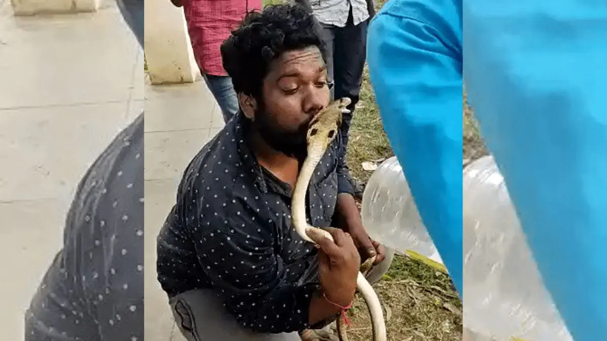 در ویدئویی که در شبکههای اجتماعی پخش شده مرد جوان سعی میکند سر مار کبرا را ببوسد، اما مار ناگهان سر خود را به عقب برگرداند لبهای او را گاز گرفت.
