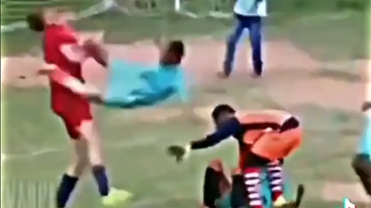 یک بازیکن جوان در مسابقه فوتبال، قلدوربازی رقیب را تاب نیاورد و با لگدی پرنده او را در زمین قصاص کرد.