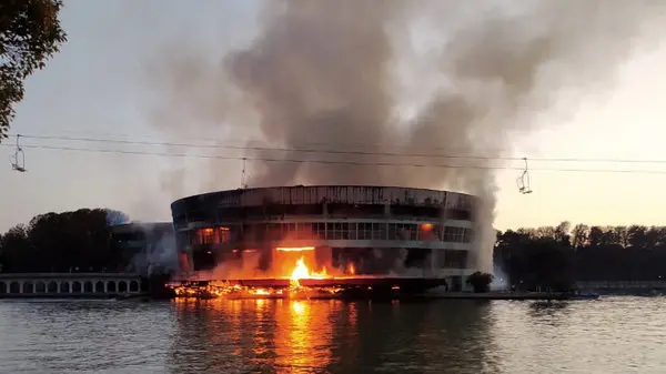 6 عکس از آتش سوزی بزرگ ساختمان تاریخی پارک ارم + فیلم و جزییات