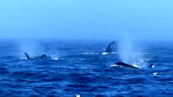 نهنگ های قاتل که معمولا مشغول شکارهای کوچکتر مانند فوکها، شیرهای دریایی و خوکهای دریایی هستند، این بار به صورت جمعی به شکاری بسیار بزرگتر از خود حمله کردند. درگیریها شامل ضربه زدن با دم، گاز گرفتن بالهها و صداهای بلندی بود که از بالای سطح آب به گوش می رسید.
