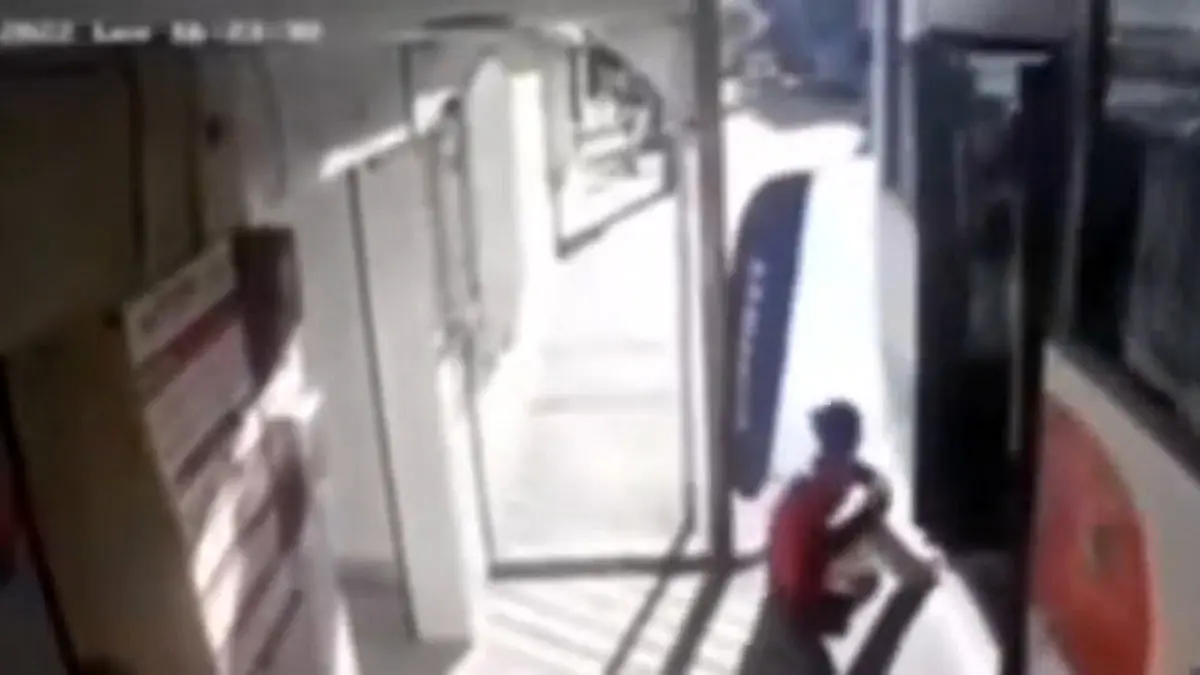 رکنا : پسر بازیگوش قبل از توقف کامل اتوبوس در حال پیاده شدن بود که با شدت به ایستگاه اتوبوس برخورد کرد.