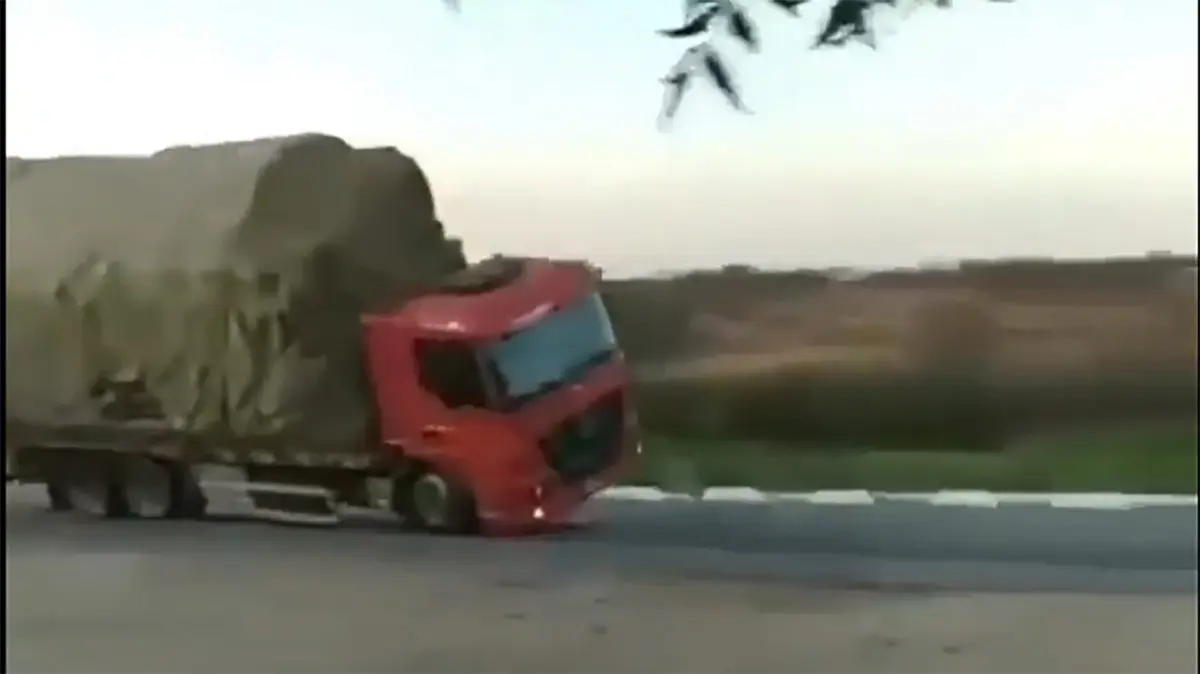 ببینید / واژگونی وحشتناک یک تریلی به دلیل سرعت زیاد در جاده