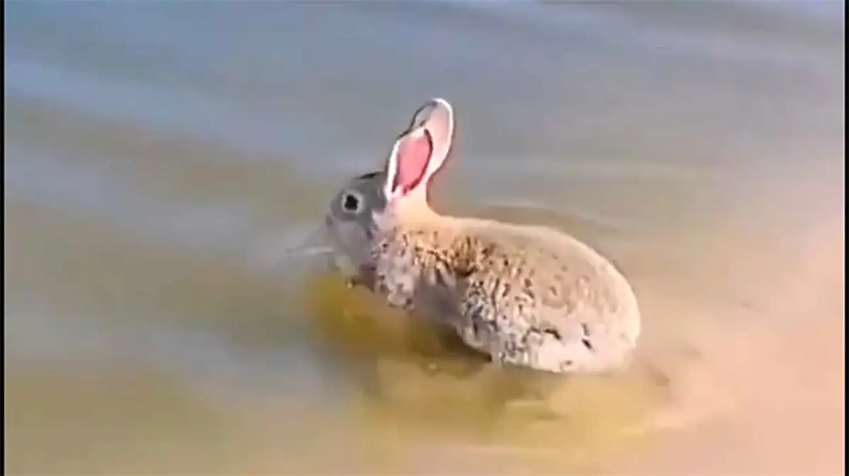 ببینید / لحظه منحصربفرد و جالب شنای خرگوش
