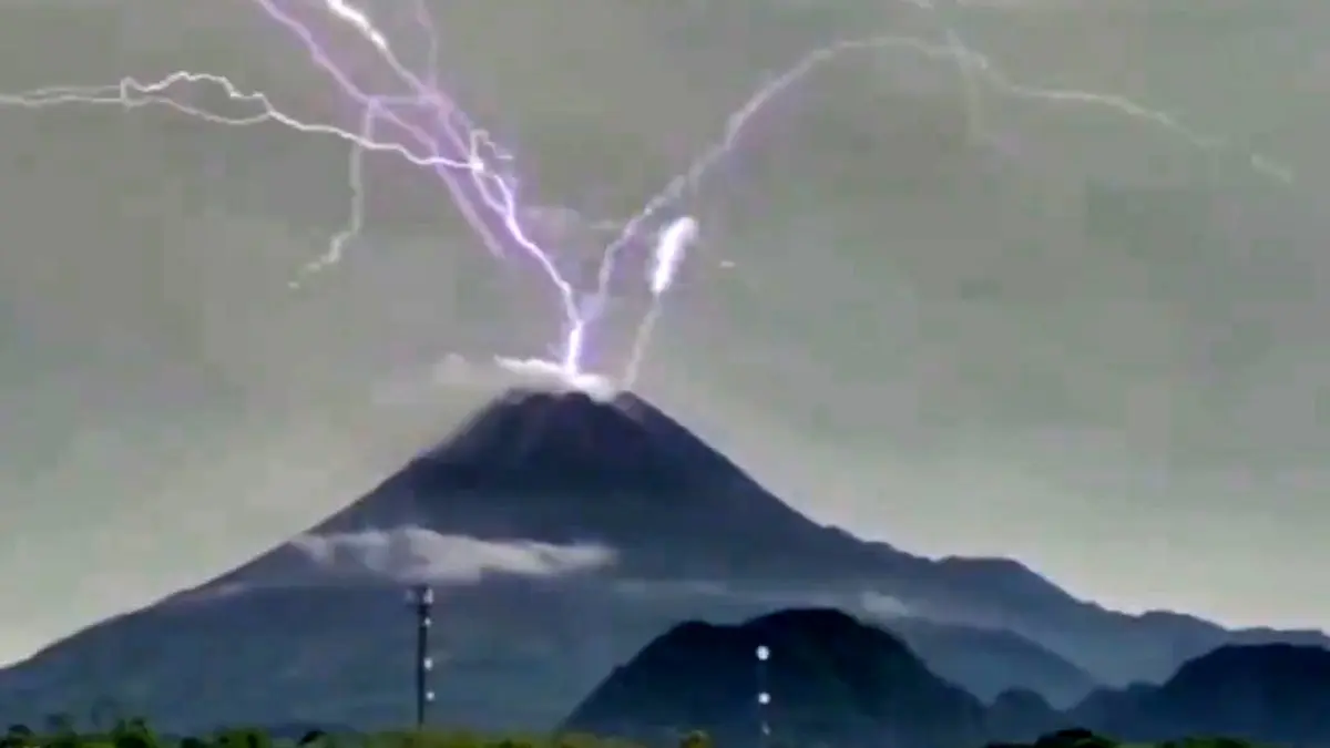 ببینید / برخورد وحشتناک صاعقه با کوه آتشفشان + فیلم