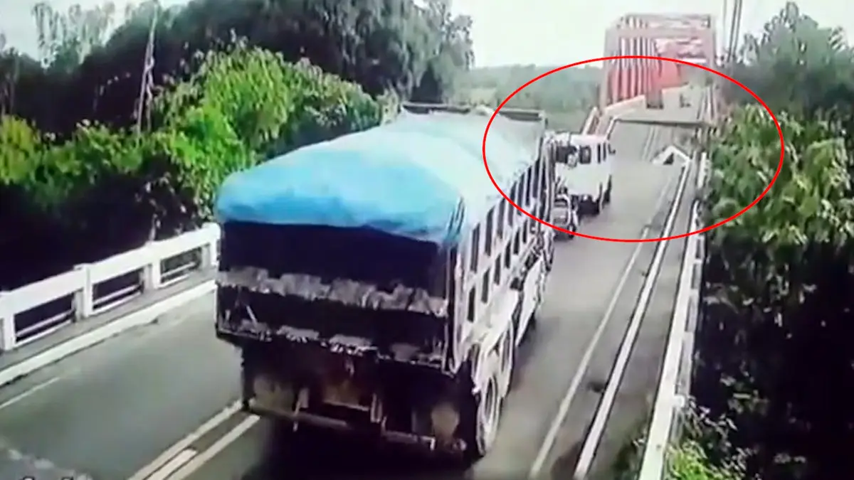 ببینید / فیلم وحشتناک از فرو ریختن پل / راننده کامیون در حال حرکت بود که پل ریخت