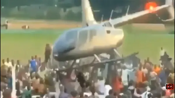 حوادث رکنا: ویدیویی عجیب از ازدحام مردم در اطراف یک هلیکوپتر در حال پرواز منتشر شده است که لحظات ترسناک از آویزان شدن مردم به آن را به تصویر کشیده است.