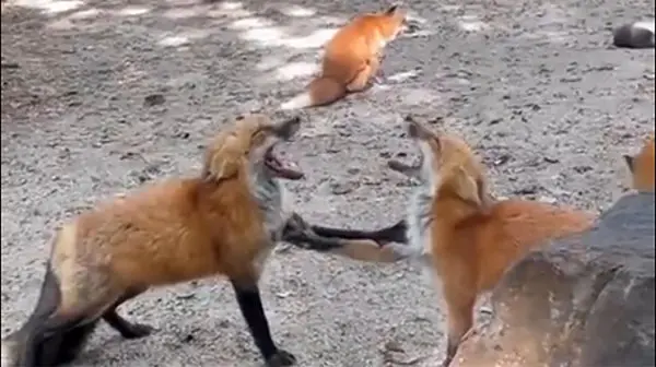 ببینید / رجزخوانی و جیغ کشیدن عجیب 2 روباه پیش از مبارزه تنبهتن + فیلم