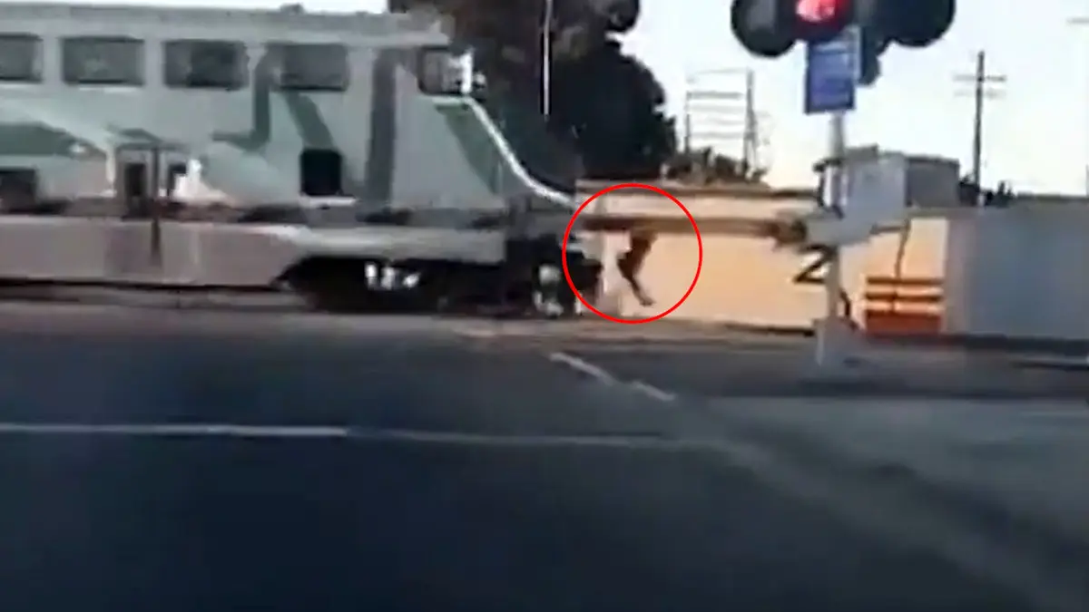 ببینید / فیلم وحشتناک از تصادف مرد جوان با قطار / جسارت کار دستش داد