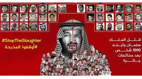 در پوستر این نهاد حقوق بشری آمده است که سلمان بن عبدالعزیز و پسرش از زمان به قدرت رسیدن بیش از ۱۰۰۰ نفر را طی دادگاههای ناعادلانه به قتل رساندهاند.