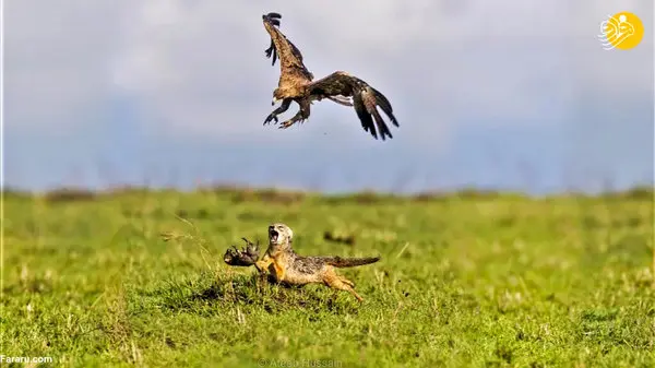 عکس لحظه نجات بچه شغال از چنگال عقاب توسط مادرش