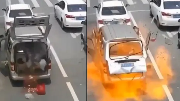 ببینید / انفجار هولناک خودروی ون پشت چراغ قرمز / همه شوکه شدند + فیلم