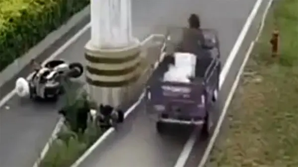 حوادث رکنا: مردی که با موتور خود با مانع بین راه برخورد کرد و صدمه دید با بی تفاوتی عابرینی مواجه شد که هیچ تلاشی برای کمک به او نکردند.