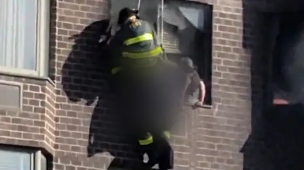 رکنا : آتشنشانان در "منهتن" زن جوانی که به علت آتش سوزی ساختمان از 15 طبقه آویزان بود نجات دادند.