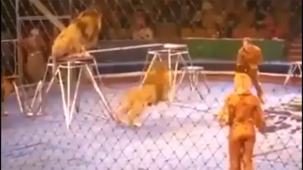 حوادث رکنا: لحظه هولناک شورش و حمله شیرهای سیرک به مربیان را ببینید خوشبختانه این حمله مهار شد.