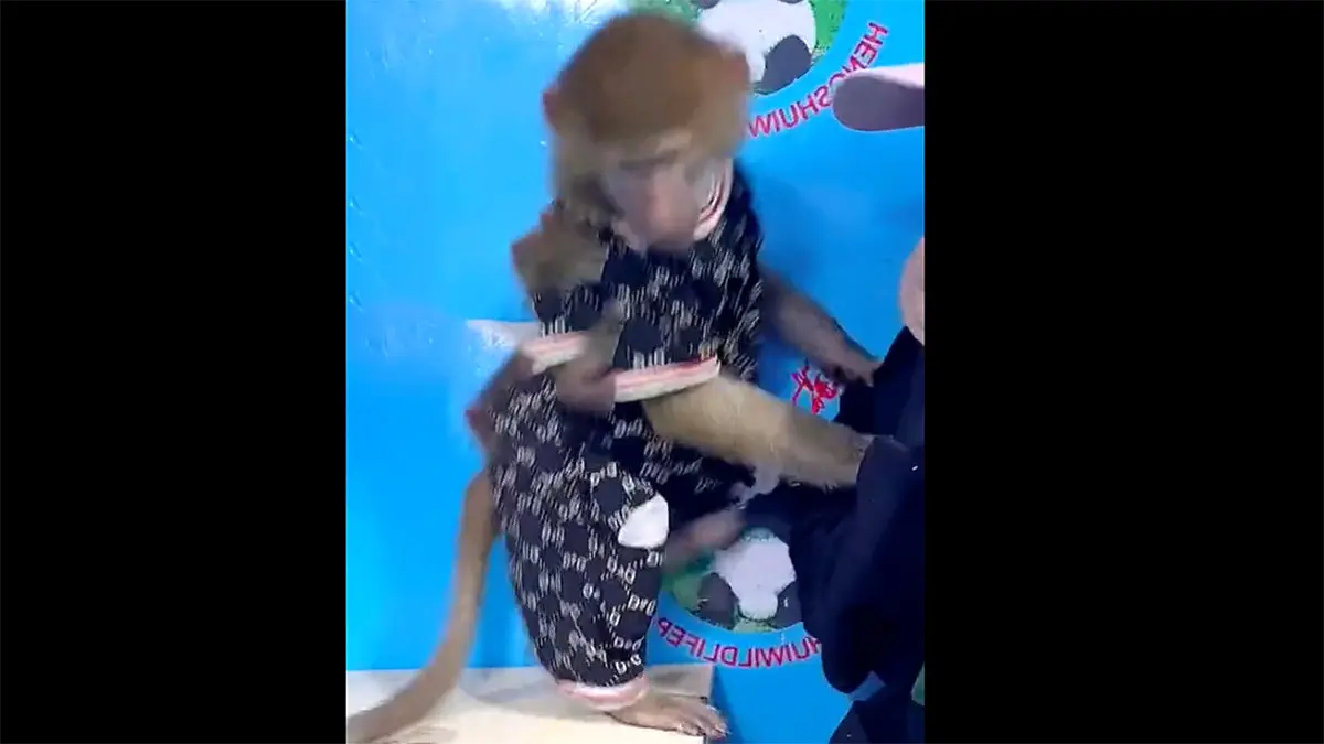 فیلم دیدنی از واکنش یک میمون به ترسیدن دختر جوان