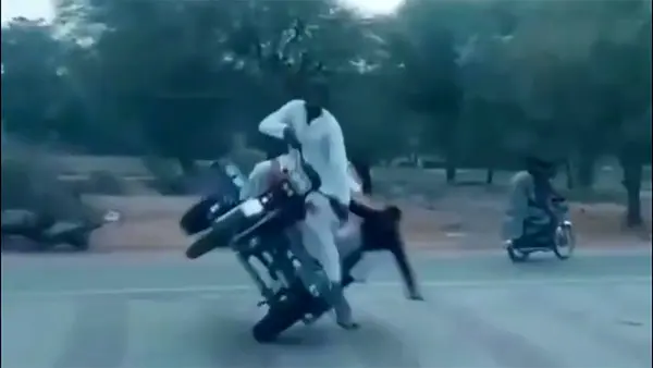 ببینید / شیرین‌کاری عجیب یک موتورسوار! / شوکه می شوید