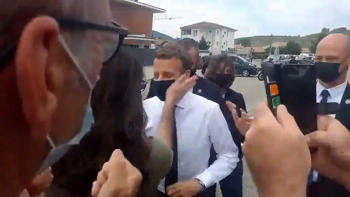 رکنا : یک زن معترض به مکرون رئیس جمهور فرانسه سیلی زد.