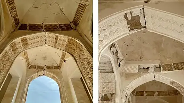 او با اشاره به اینکه ترک‌های ایجادشده در پوشش بام و طاق‌ها، عمیق و سازه‌ای بوده، افزود: در بارش‌های فصلی پیش رو شرایط استحکامی و ساختار بنا درخطر جدی است و نیاز به تعمیر و مرمت اضطراری این بنا ضروری است.