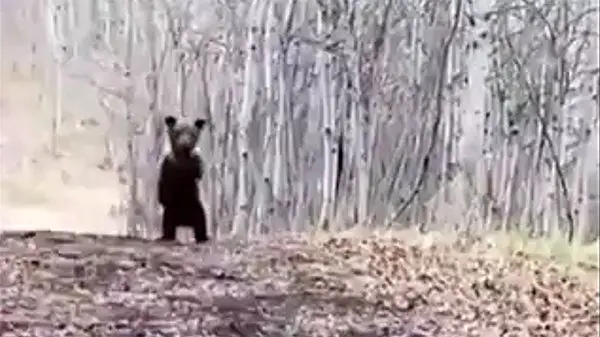 به گزارش رکنا؛ خرس کوچولو که کمی احساس خطر کرده بود، برای این که فیلمبردار را بترساند و دور کند، حرکاتی انجام داد که بسیار بانمک بود.