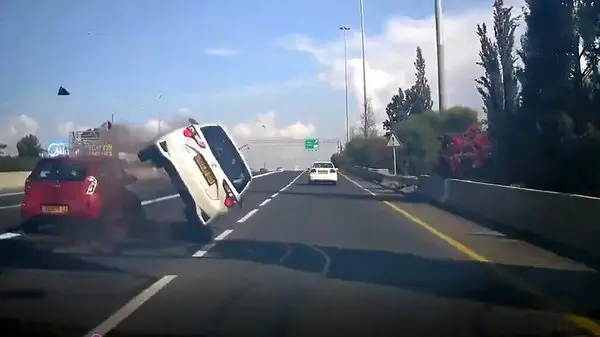 فیلم از لحظه دلخراش چپ شدن خودرو پس از سبقت