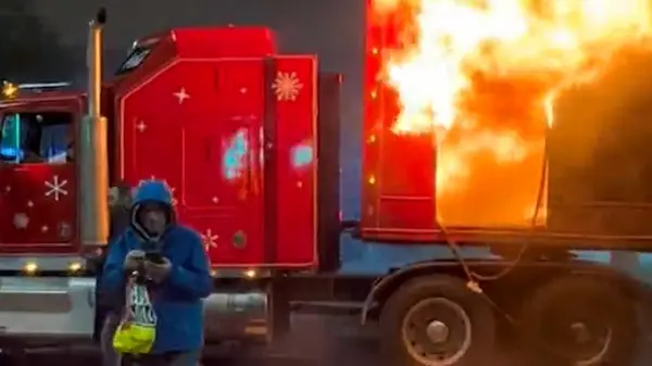 فیلم آتش گرفتن کامیون شرکت کوکاکولا در زیر آتش