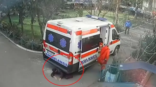 ببینید / راننده عجول آمبولانس مرد جوان را زیر گرفت و روی او پارک کرد + فیلم شوک آور