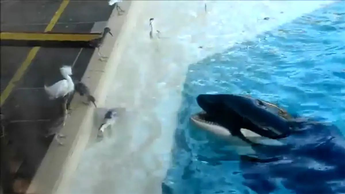 حوادث رکنا: یک وال در صحنه ای جالب چند پرنده را که اطراف خود می دید در صحنه ای برقآسا یکی از پرندگان نزدیک خود را بلعید.