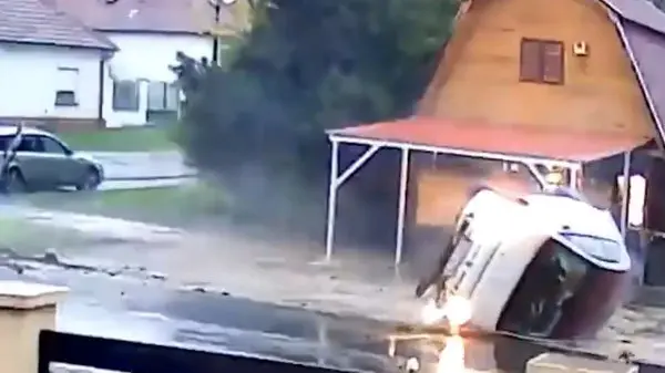 ببینید / راننده مست به تیر چراغ برق خورد و به هوا رفت + فیلم شوک آور