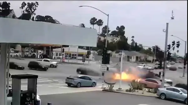 ببینید /جنون یک راننده/ لحظه شوکه‌ کننده تصادف و انفجار یک خودرو! + فیلم