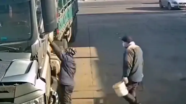 رکنا : 2 مرد به قصد دزدی می خواستند وارد کامیون بشوند که نا گهان وسیله نقلیه دزد ها خود خواسته حرکت کرد و دزدی این 2 سارق را نا کام ماند .