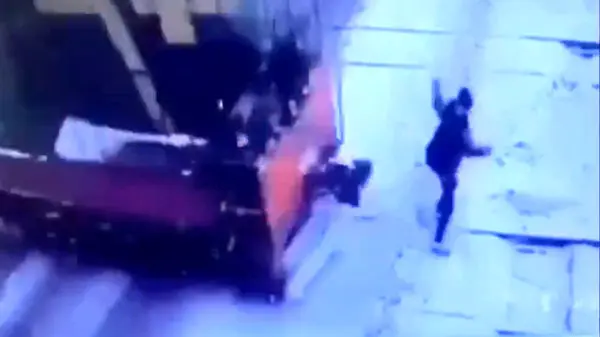 فیلم لحظه لیزخوردن جوان به زیر قطار مسافربری در خیابان های یخ زده
